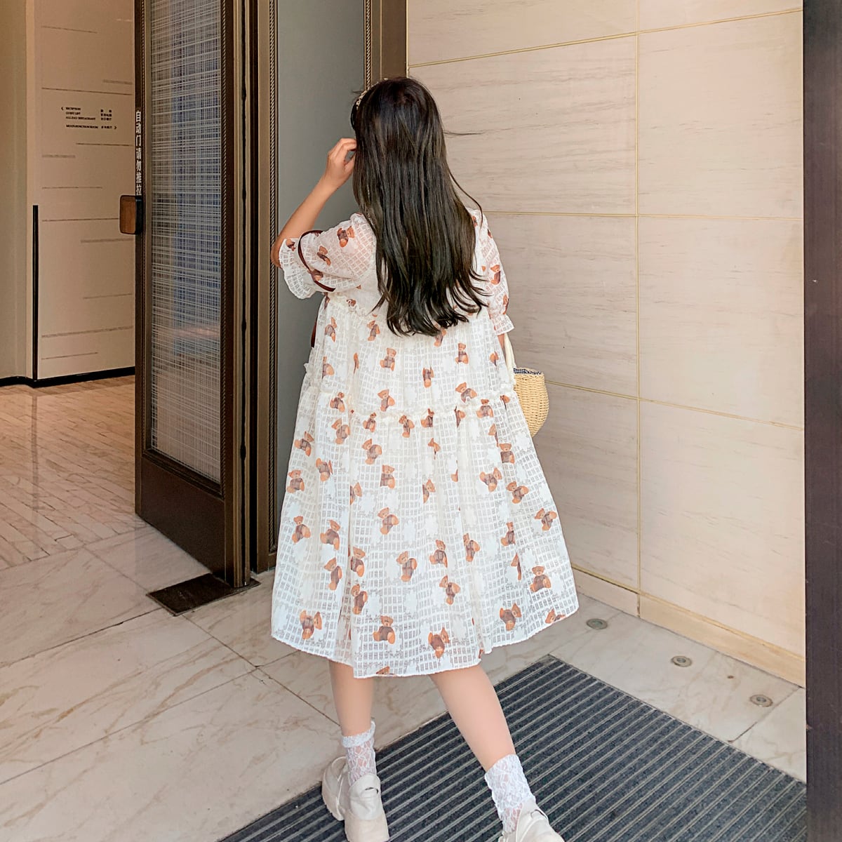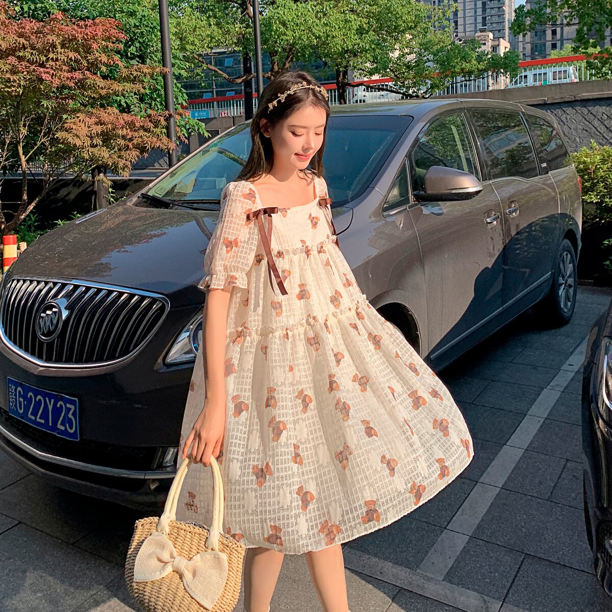 おしゃれ かわいい マタニティウェア ドレス サマー薄手ルーズプリント柄リボン 大きめサイズ 夏物 hotmom71865003544