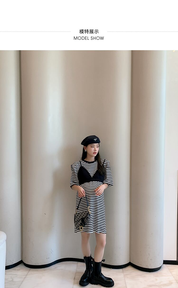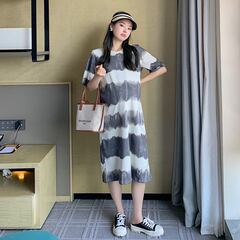 おしゃれ かわいい マタニティウェア Tシャツ サマー薄手ストライプルーズドレス 夏物 スカート hotmom94354291027