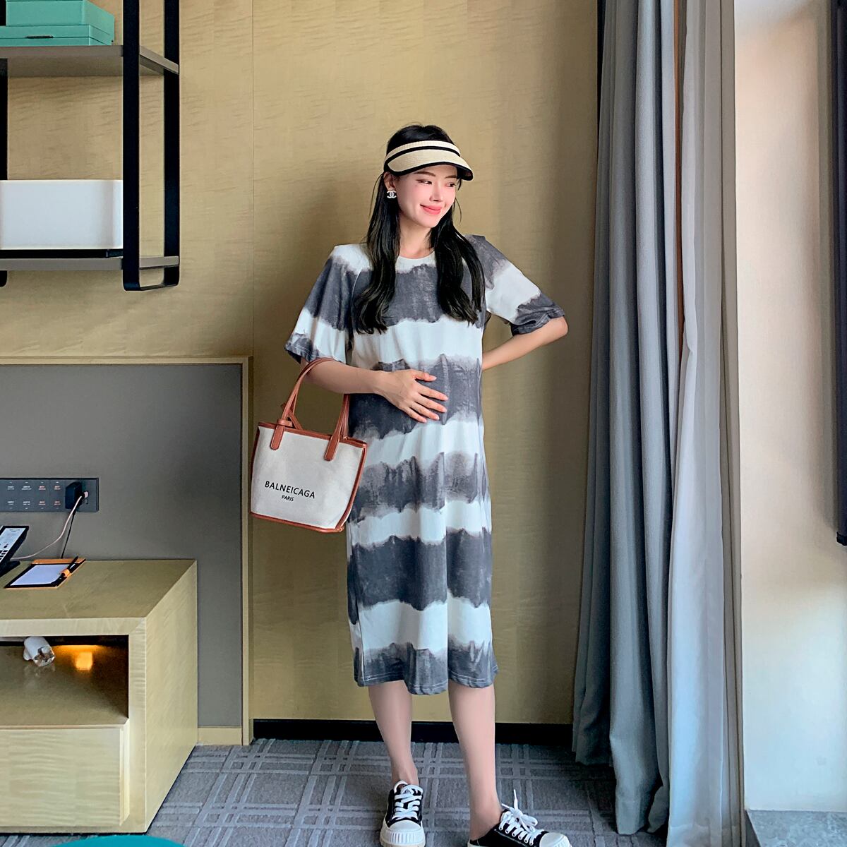 おしゃれ かわいい マタニティウェア Tシャツ ドレス サマーカラーバックルーズスカート コットン 大きめサイズ 夏物 ピュア hotmom39064885624