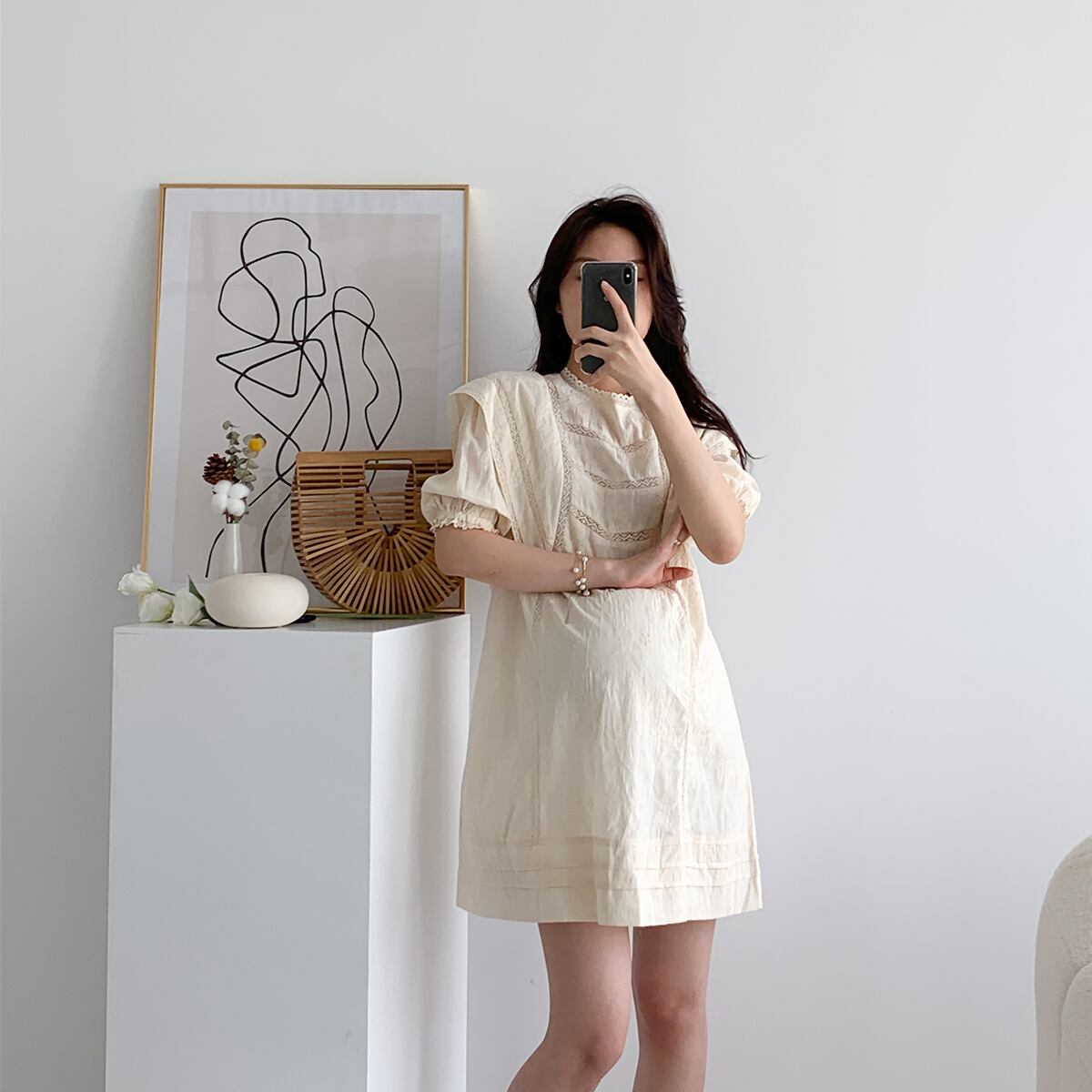 おしゃれ かわいい マタニティウェア ドレス サマー薄手スタイル刺繍レースAラインルーズスカート コットン 夏物 hotmom87031740783