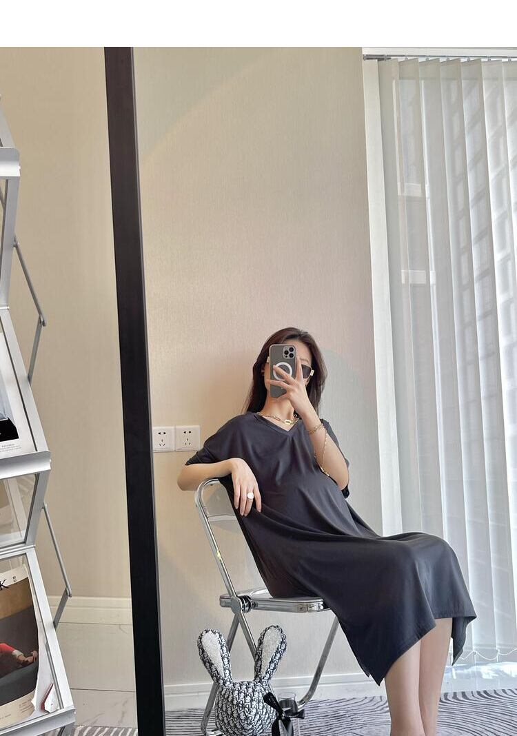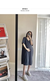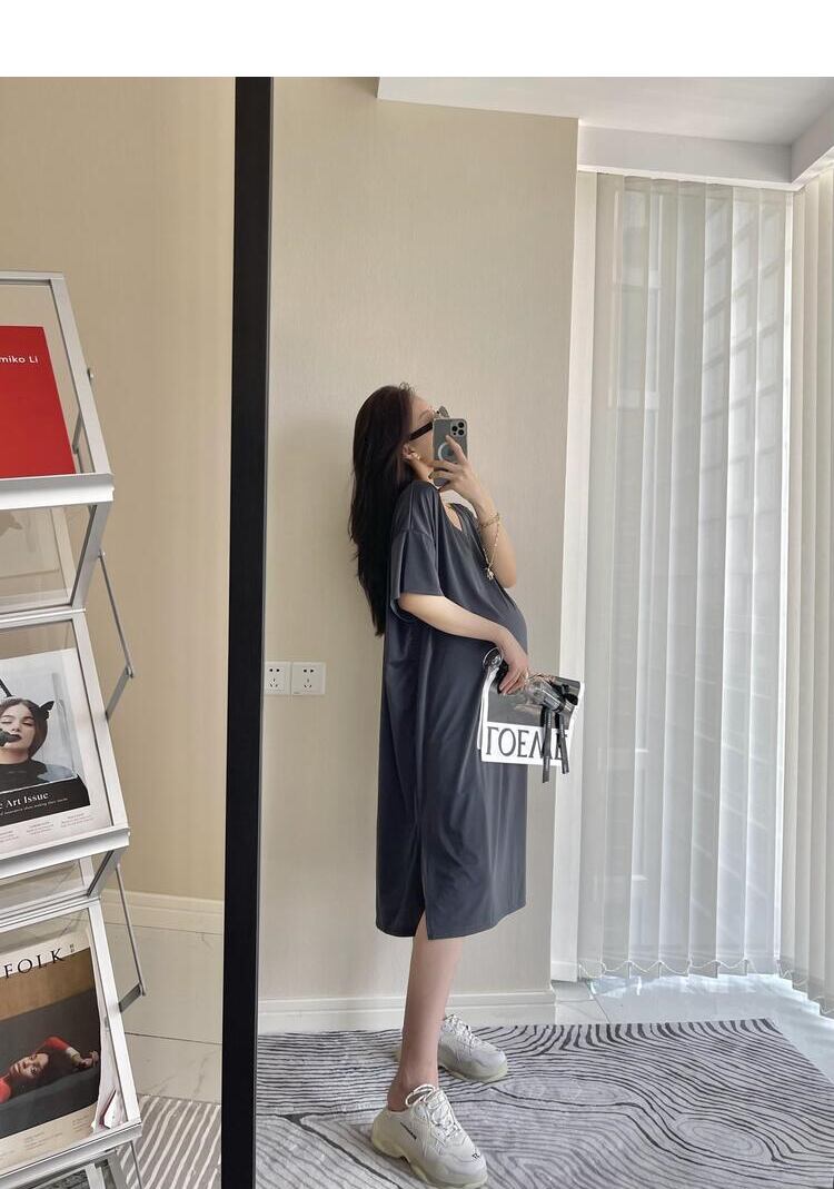 おしゃれ かわいい マタニティウェア Tシャツ サマー薄手ロングルーズストラップレスカラードレス トップス 大きめサイズ 夏物 ピュア hotmom22109469847