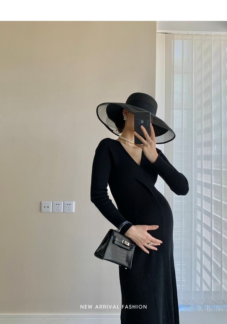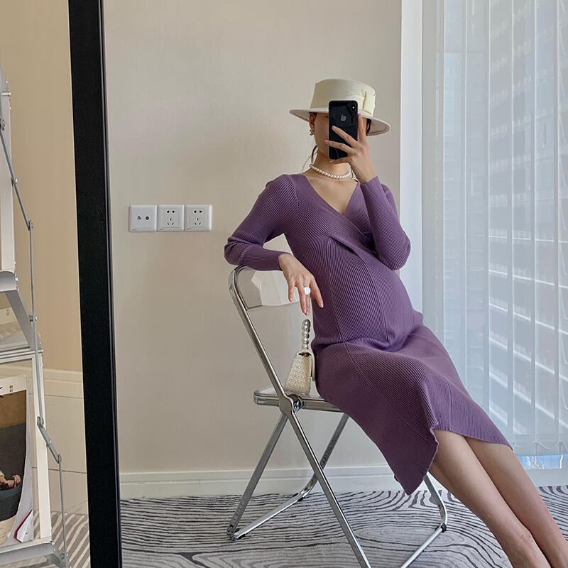 おしゃれ かわいい マタニティウェア ニットスカート オータムVネックスリム ロング 秋物 hotmom48751447122
