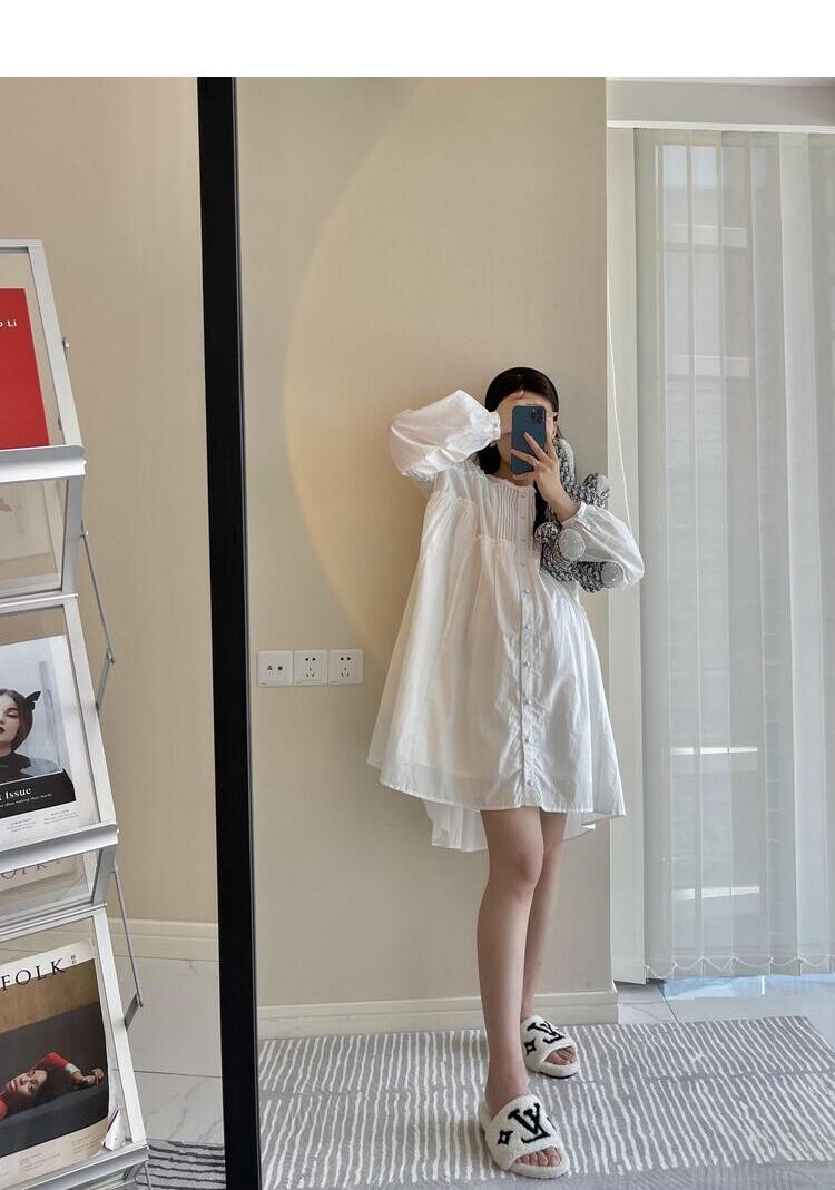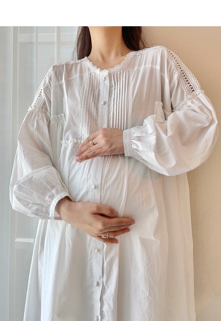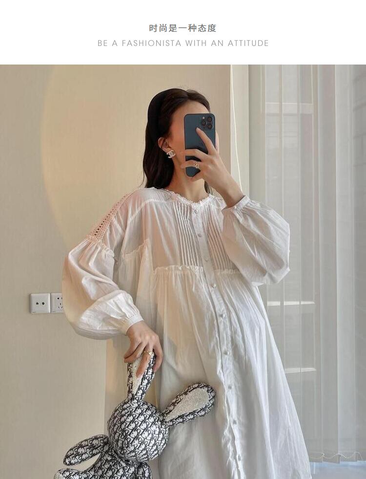 おしゃれ かわいい マタニティウェア オータムトップス シャツ スカート ホワイトルーズAラインドレス 秋物 hotmom40678499651