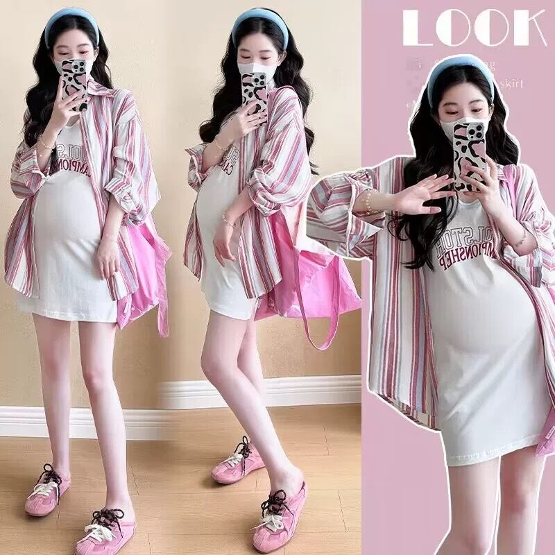 シャツ+ワンピース セットアップ 大きいサイズ マタニティウェア 妊婦服 出産準備 かわいいマタニティウェア おしゃれマタニティウェア fm25021101